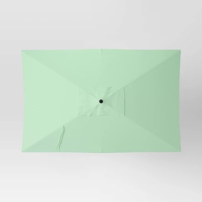 This 10-Foot x 6-Foot Rectangular Market Patio Umbrella with Black Pole from Threshold™ is a great choice for your outdoor space. Made with solid-colored, fade-resistant fabric for lasting outdoor use, the umbrella has a black pole and steel frame and is compatible with centered pole umbrella bases (sold separately). It’s easy to set up with no tools needed, and with a crank lift and push-button tilt, you can effortlessly adjust the umbrella to maintain the perfect shady spot.