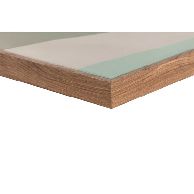 - Sleek brown frame works with any decor