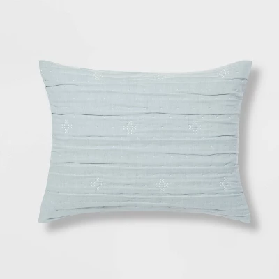 Evoke lush comfort and style in your bedroom oasis with the Hartly Woven Diamond Comforter Bedding Set from Threshold™. The comforter is adorned with white embroidered diamond motifs on a contrast-colored woven matelasse background for a stunning aesthetic that will complement any bedroom decor. A square and a rectangular decorative pillow with an embroidered or fringed diamond design, as well as matching pillow sham(s), coordinate with the top of the bed for a cohesive look. This comforter bedding set features a year-round fabric construction for comfortable use. Pair it with white bedsheets to enhance the polished look.