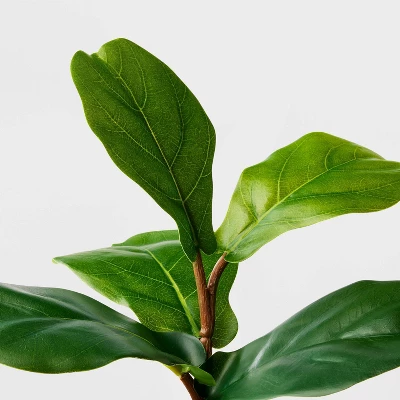 Add effortless greenery to your home with this Fiddle Leaf Arrangement from Threshold™. This artificial potted plant showcases lush green leaves arranged together to lend extra texture for a warm and welcoming look. The artificial plant is housed inside a white pot with wooden stand for an elevated display. Place it on your living room tabletop for a gorgeous aesthetic, or arrange it in a group with other faux plants to create a relaxing indoor sanctuary.