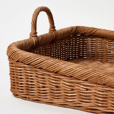 Maintain a vintage look in your dining area or any other space with the Vintage French Tray from Threshold™ designed with Studio McGee. Woven from rattan, this rectangular tray brings textural charm to your home. It features a slight curve on both sides to add a bit of style, while the built-in handles complete the classic look. Place it on your kitchen island or dining room table for a lovely centerpiece that’s sure to garner compliments.